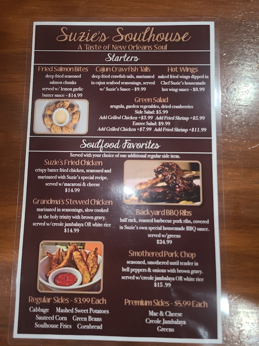Welcome to Suzie's Soulhouse Soulfood and Catering, a true gem nestled at 1205 St Charles Ave, New Orleans. This inviting eatery is the epitome of soul food, offering hearty, flavorful dishes that embody the spirit of Southern culinary traditions. As you step inside, the vibrant atmosphere greets you, filled with the sounds of engaging music and the aroma of home-cooked meals wafting through the air.